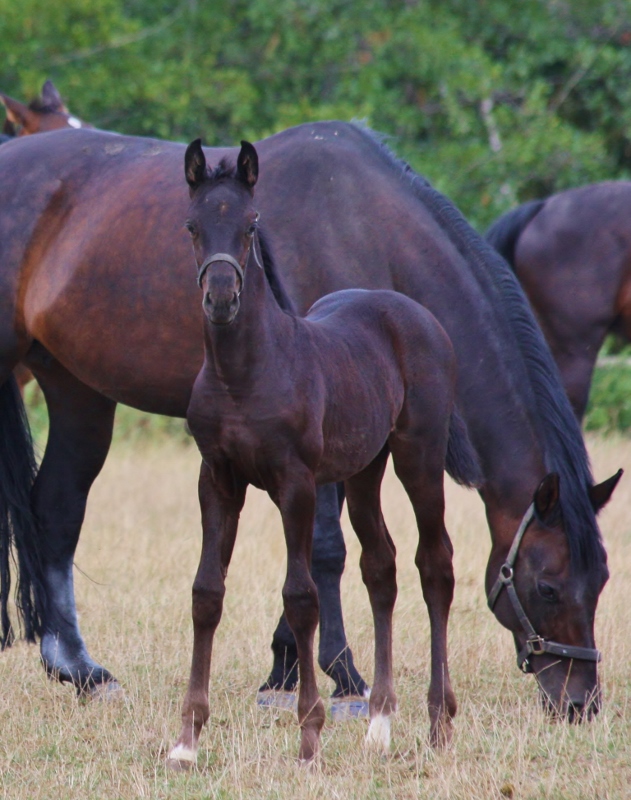 Dunkelbraune Stute 2019 von For Gold/Jazzman/Rubinstein aus dem Elektia Stamm. Mutter ist Vollschwester zu dem gekörten Jazz Rubin, Intermediare I erfolgreichen Sportpferden, Elitestuten. Großmutter (Elitestute) ist die Vollschwester zu Rohdiamant/Royal Diamond.