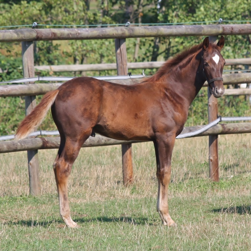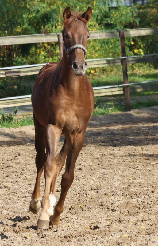 Brauner Hengst 2019 von Le Vivaldi/Dr. Jackson/Jazzman aus Stamm Don Schufro. Mutter ist Prämienstute und Großmutter ist Schwester zu dem gekörten Ron Rubin, Championatserfolgreichen Pferden, sporterfolgreichen S-Dressurpferden usw.. Urgroßmutter ist Vollschwester zu Don Schufro