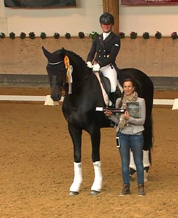 Unsere St.-Pr.A "QUADRIGA´S DIAMANTISSIMA" (v. Diamond Hit/Campari) konnte soverän M* mit 8,1 gewinnen und sich am nächsten Tag in der zweiten M* noch mal hoch platzieren. Sie war bereits 5 jährig zum BCH qualifiziert und ist die Schwester zur Mutter unseres DR. Q. Desweiteren ist die Stute Vollschwester zu unserem Grand Prix erfolgreichen "QUADRIGA´S DON CISMO". Hier handelt es sich um den Walhdexe Stamm der zu einem der besten in Oldenburg zählt.